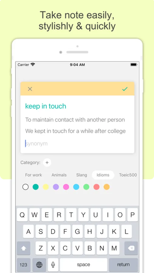 - When encountering a new word in your studies, simply open Whale Notes and create a note containing its meaning and an example sentence.
