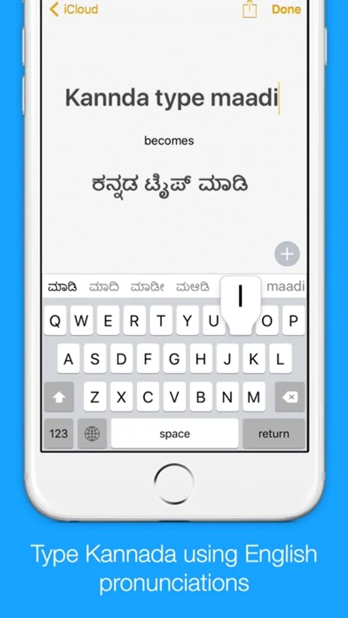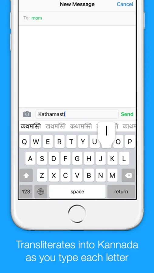 For example, typing "namaste" will be converted into the Kannada letters right as you type! It’s simple, fast and super accurate. You don’t need to worry about typing in the exact English spelling for an Kannada word, KeyNounce is smart enough to accept many input spellings for the same output word.