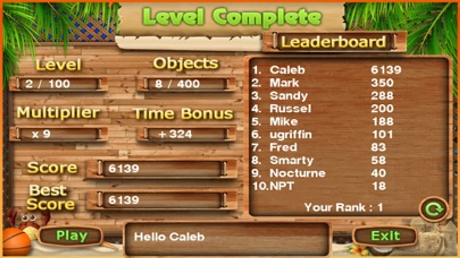 - Try to get the highest score and be on TOP of the LEADERBOARD