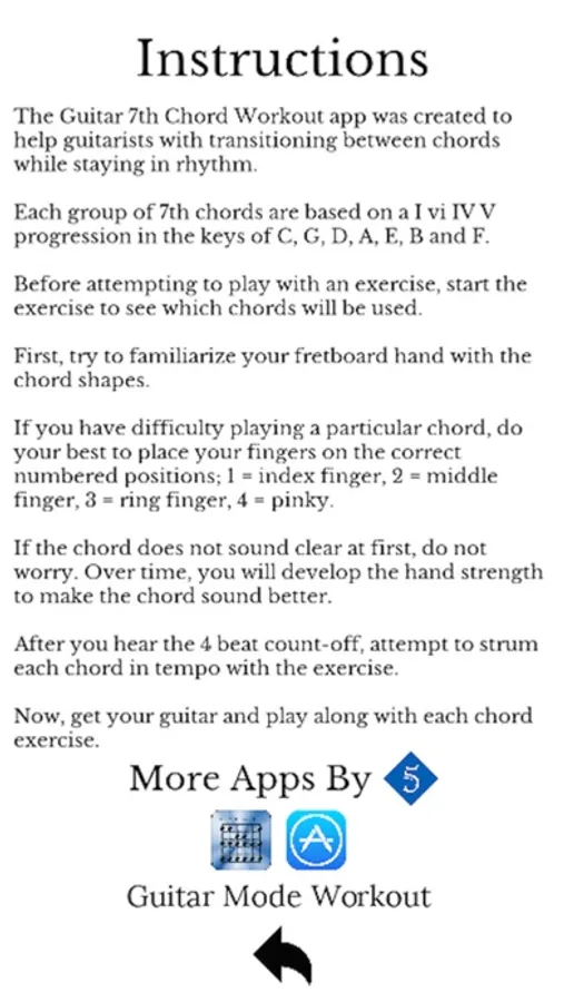 The Guitar 7th Chord Workout app was created to help guitarists with transitioning between chords while staying in rhythm.
