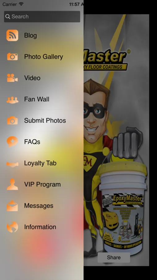 The EpoxyMaster Mobile App is your resource for information regarding the finest in industrial epoxy floor paint coatings and Do-It-Yourself kits for garages, basements, patios and much more. Use the app to watch our instructional videos right from your mobile device.