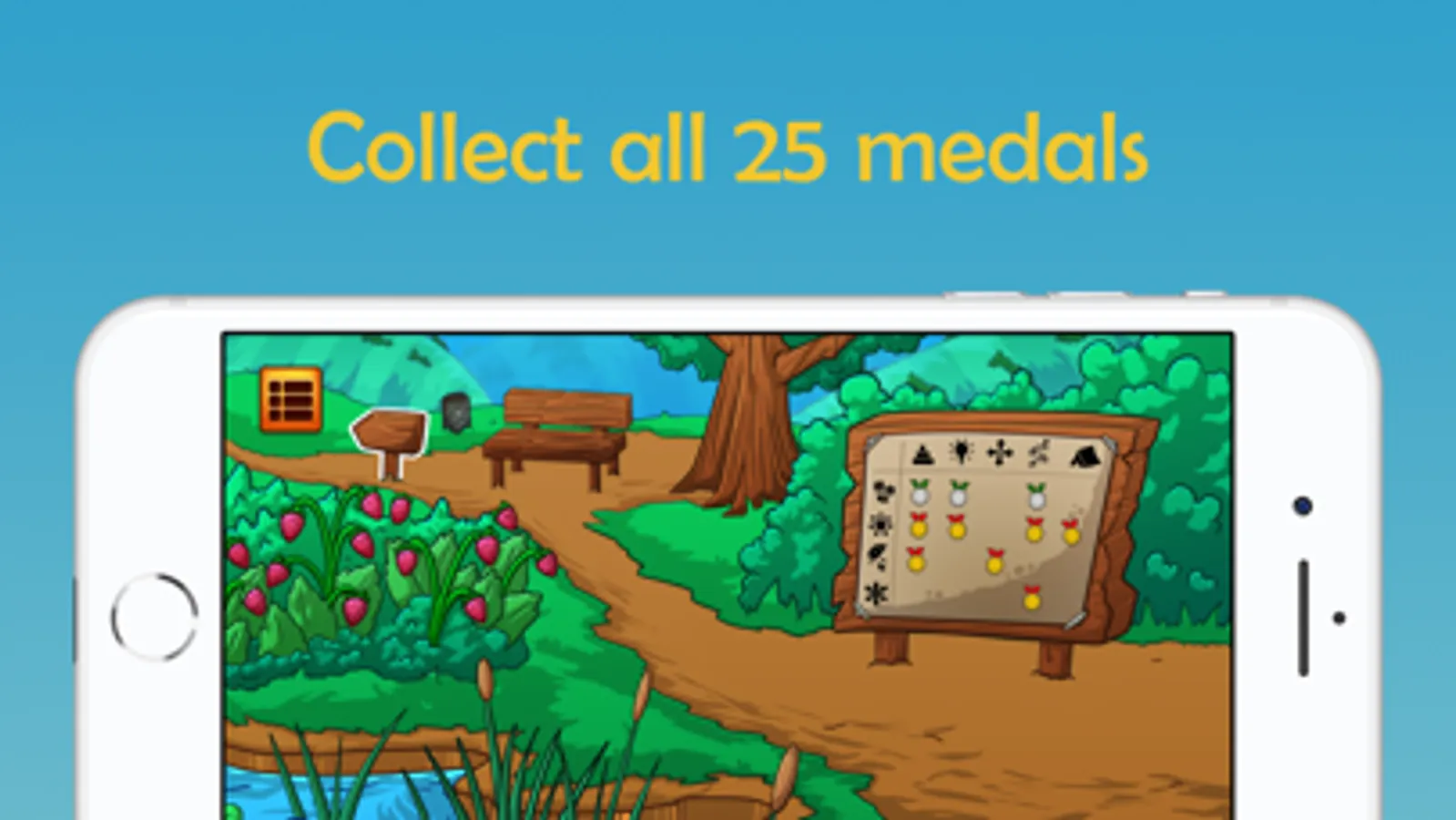 Lush and bright environments, accompanied with a happy tune, give you the opportunity to sit back and relax a bit. Sharpen your mind with charming puzzles - they start easy, but they get harder and harder with every one you complete. Can you solve them all?