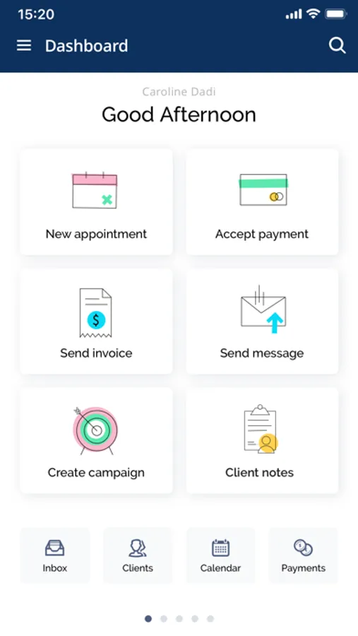 Calendar, scheduling, client management, payments and marketing - all from one app.
