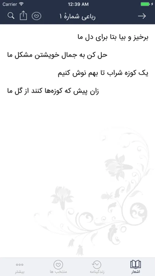 - قابلیت کپی اشعار جهت استفاده در نرم افزارهای مختلف