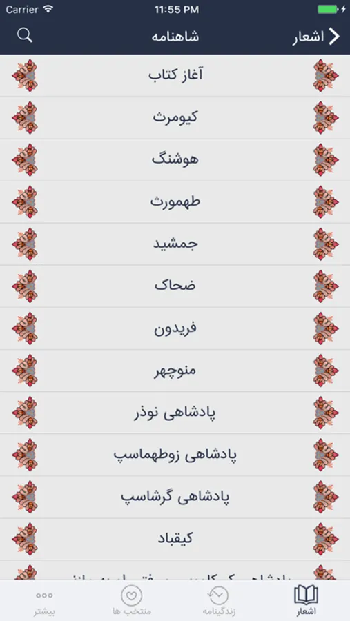 - شعرهای مورد علاقه ی خود را میتوانید درقسمت «اشعار دلخواه» ثبت کنید