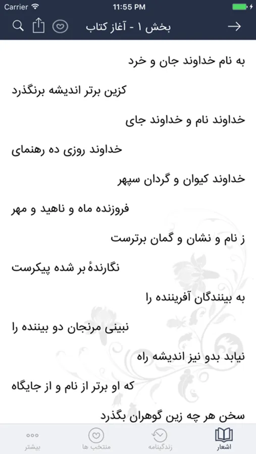 - قابلیت کپی اشعار جهت استفاده در نرم افزارهای مختلف