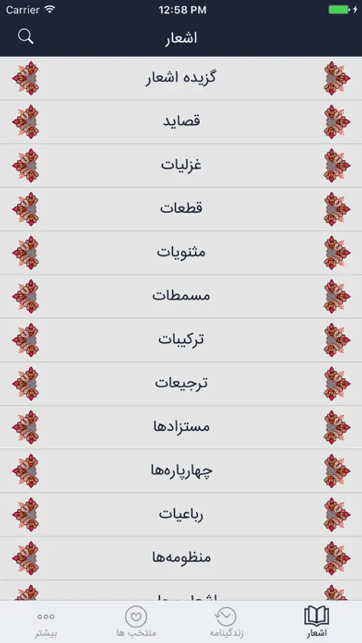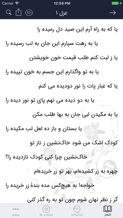 - شعرهای مورد علاقه ی خود را میتوانید درقسمت «اشعار دلخواه» ثبت کنید