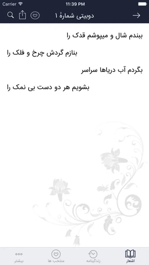 - قابلیت کپی اشعار جهت استفاده در نرم افزارهای مختلف