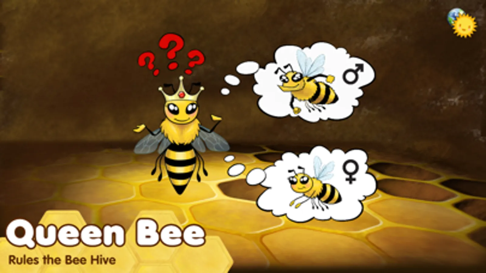 • Did you know that the Builder Bee builds the honeycombs, and you can too! In the first maze, touch the screen and help the Builder Bee build the honeycomb! Complete the maze and watch bees fill the honeycomb cells with honey, made in their own bodies with consumed pollen and nectar.