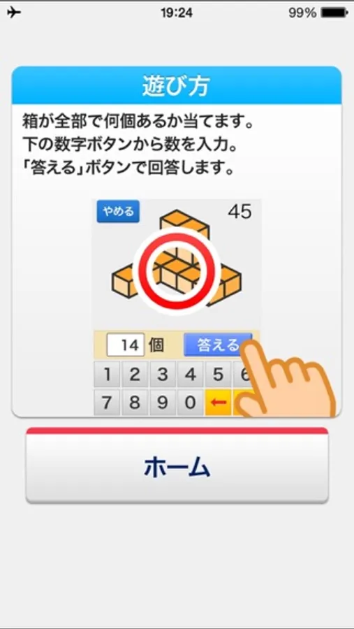 表示されたボックスが全部で何個あるか、計算して回答するアプリです。