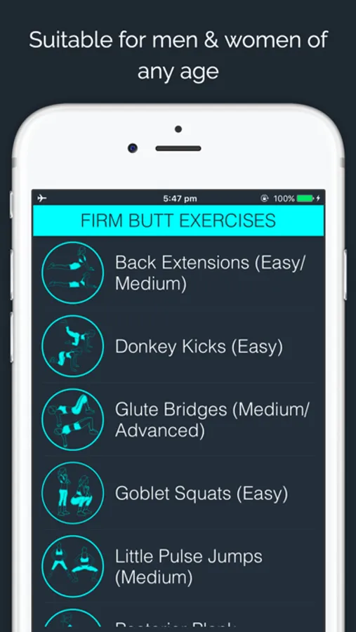 The 30 Day Firm Butt Challenge is a simple 30 day exercise plan, where you do a set number of butt firming exercises each day with rest days thrown in! The workout increases intensity slowly and day 30 will test anyone. In total the app has 6 workouts with 13 exercises. The workouts and exercises are suitable for both men and women of any age and fitness levels.
