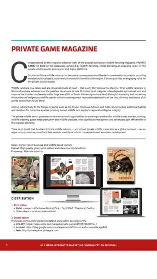 Conceptualised by the executive editorial team of the popular publication Wildlife Ranching magazine, PRIVATE GAME will build on the successes achieved by Wildlife Ranching, whilst providing an engaging voice for the private wildlife sector.