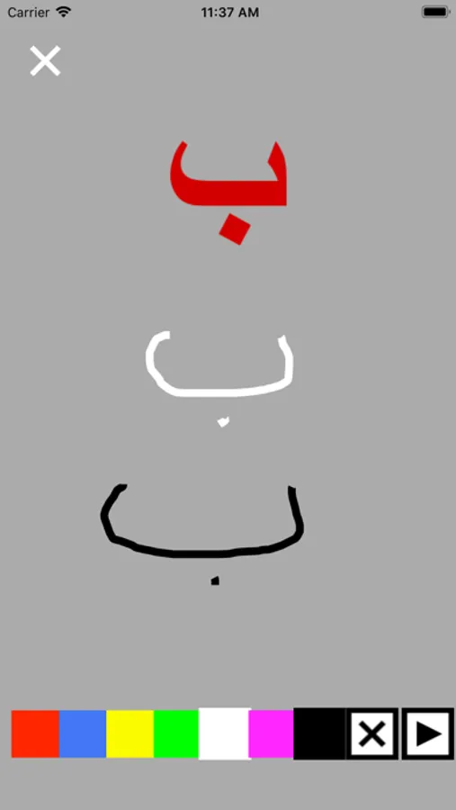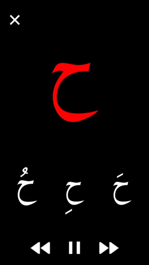 - for each letter: 3 common Arabic words with different position of each letter in the words.