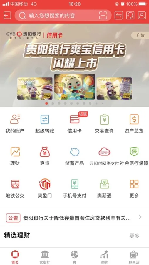 贵阳银行向您推出了全新的手机银行产品—“爽爽bank”。“爽爽bank”手机银行为您提供贴身、全天候的金融服务。您可以随时随地通过“爽爽bank”手机银行办理转账汇款、信用卡、投资理财、便捷缴费、短期中期以及长期贷款等金融业务。