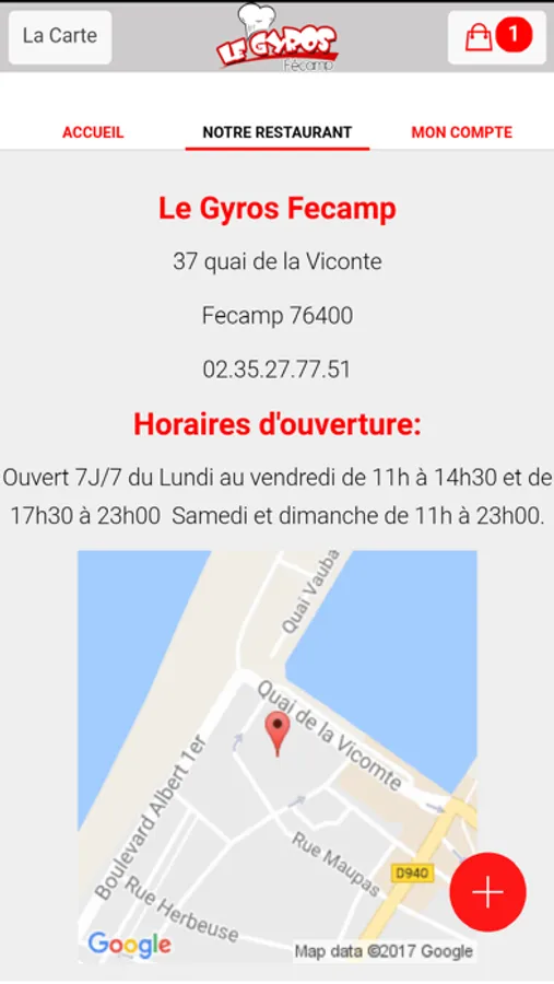 L'application Iphone/Ipad de Le Gyros Fecamp vous permet de commander en ligne ou par téléphone via votre application . Vous pouvez consulter notre carte et choisir vos produits .
