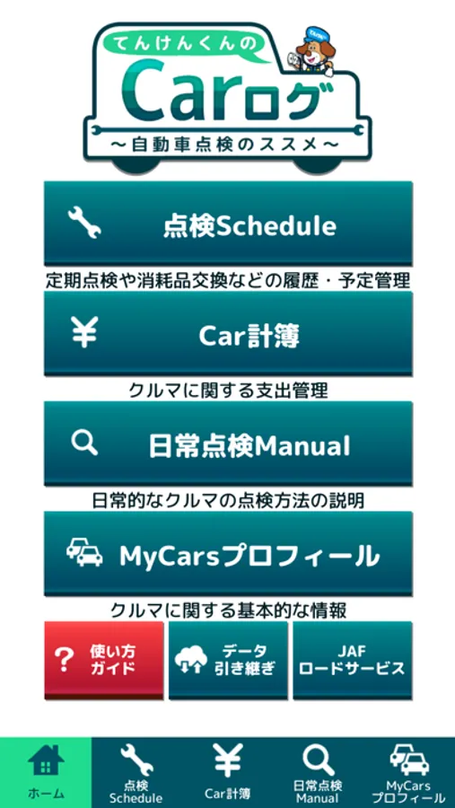 「てんけんくんのCarログ」は日整連(JASPA)がお届けする便利アプリ。