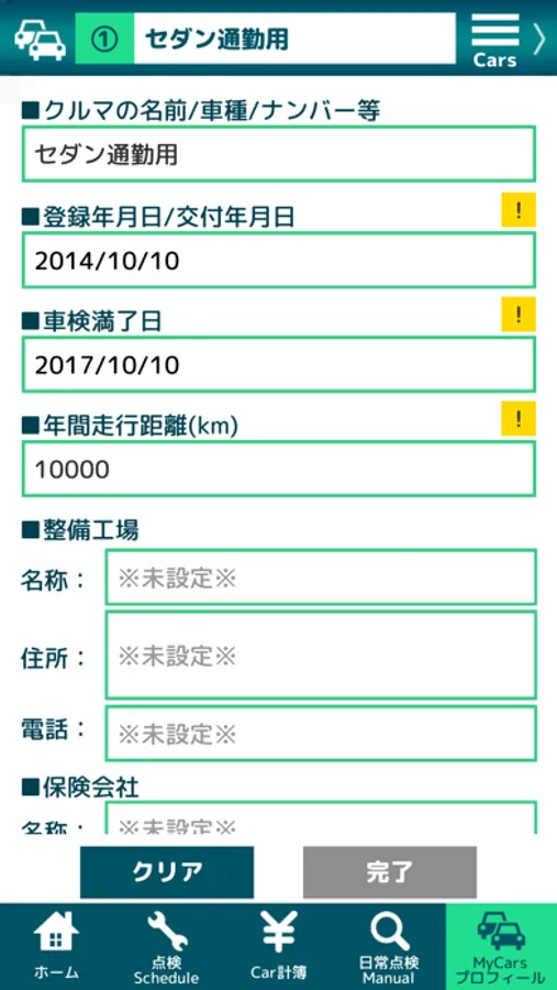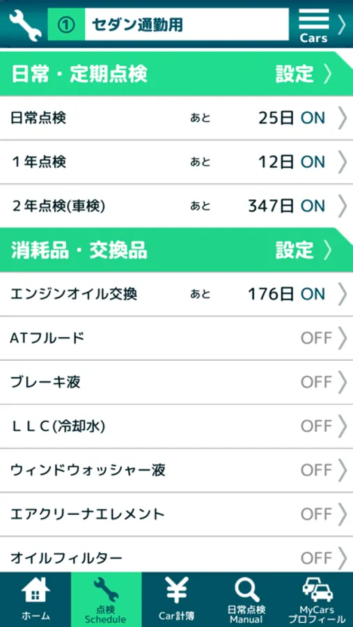 ※この基準となる距離や期間の数値は変更が可能ですので、実際の部品の状態や整備工場の専門家の意見を元に調整を行ってください