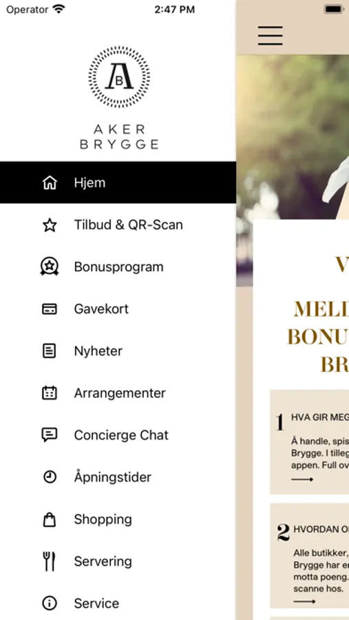 App for members of Din Aker Brygge loyalty club.