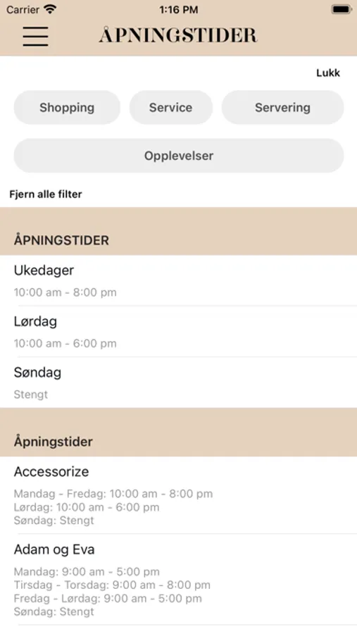 - Opening hours