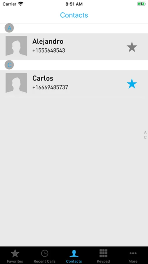 • Favorite contacts list