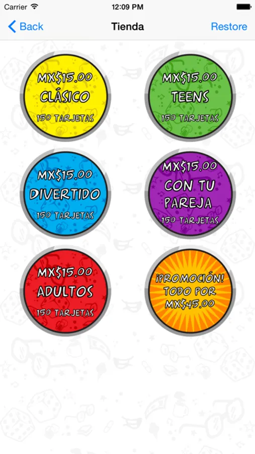 En el Plati-K app encontraras 5 categorías o tópicos, cada uno de ellos, contiene una muestra de las tarjetas. Con estas puedes jugar y verás lo divertido que es.