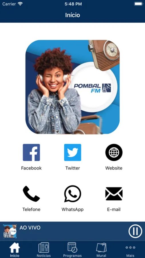 - Ouvir a programação da Rádio ao vivo