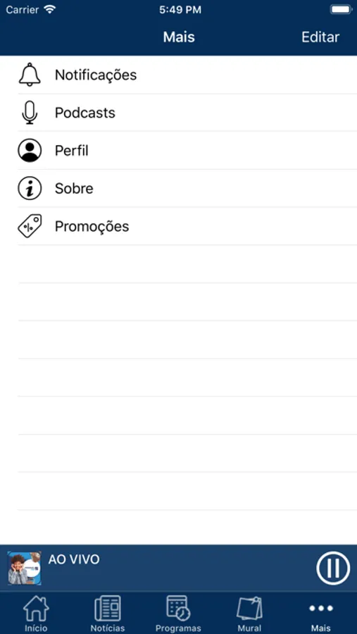 - Ouvir podcasts produzidos pela Rádio