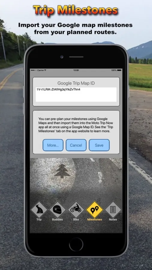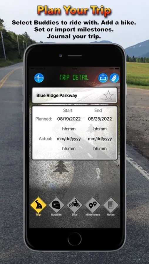 Add notes about the trip. Add notes to each milestone. Add photos to each milestone. Share your trip by posting to Facebook or sending an email. Record the date and time you achieve each milestone.