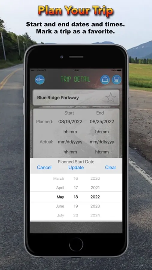 You can choose to start one of your planned trips or if you're not a planner, you can be spontaneous and just go. Either way you can record milestones, save trip notes, attach photos and keep these memories for yourself or share them with friends and family.