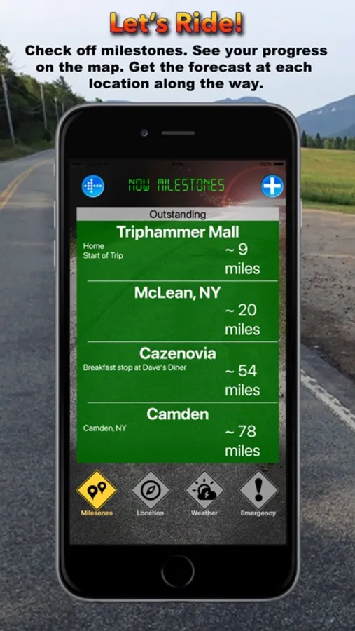 Plan or be spontaneous! Plan your route, designate milestones, share your trip itinerary with your riding buddies. Or just hit the Start button and go.