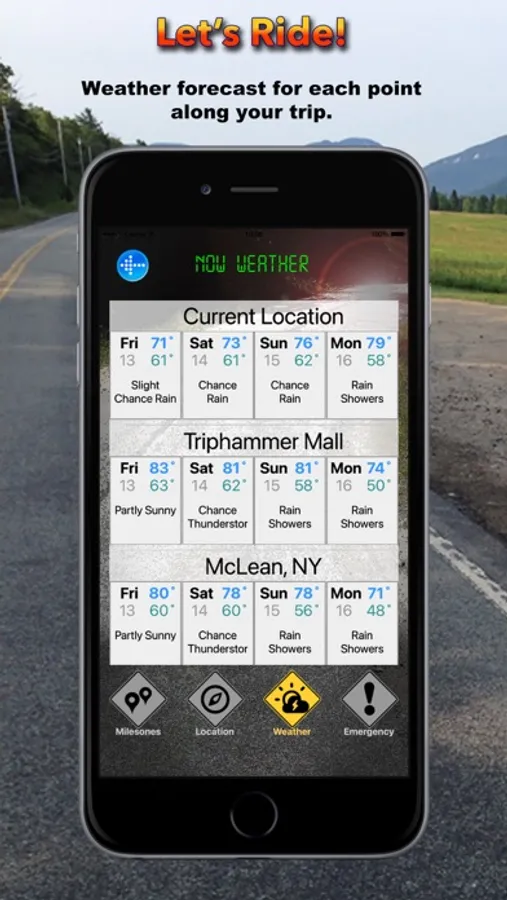 - A three-day weather forecast for your current location and for each of your upcoming milestones.