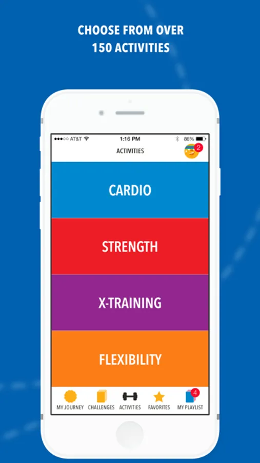 - Build customized workout playlists choosing from over 150 Cardio, Strength, X-Training or Flexibility activities
