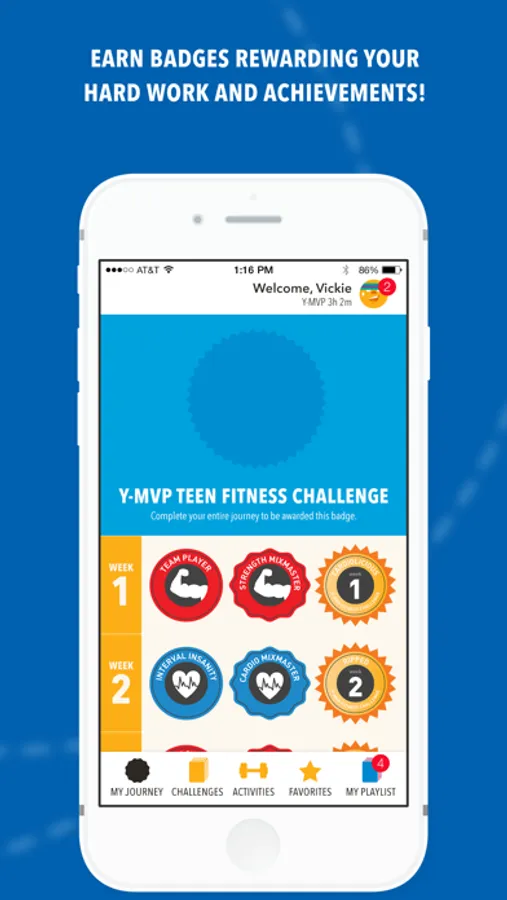 Y-MVP is a collection of FREE, fun, fitness challenges created by New York City’s YMCA especially for teens… and those that are teens at heart! Create workout playlists, earn badges and view your progress as you complete fitness Missions and Challenges.