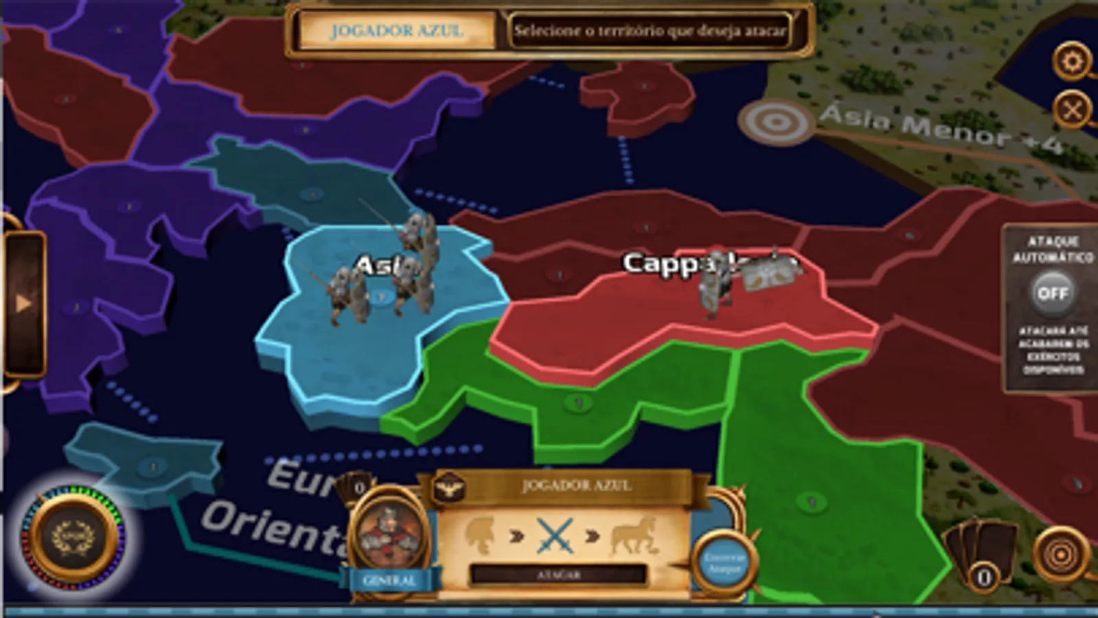 Jogo Clássico: Sinta-se no papel de um verdadeiro general. Mire no seu objetivo e defina cuidadosamente sua estratégia. Ataque na hora certa, proteja suas fronteiras e defenda seus territórios. Domine continentes inteiros, invada e conquiste territórios adversários. Mas avalie bem seus movimentos pois, assim como nas grandes guerras, ataques mal planejados podem fazer grandes potências caírem enquanto a estratégia correta pode transformar pequenos exércitos em grandes impérios!