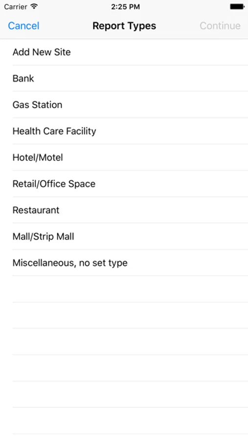 After logging into ADA Pro, under the report types menu, "saved sites" are sites saved on the device. Picking another category will check the server for already existing sites for this account.