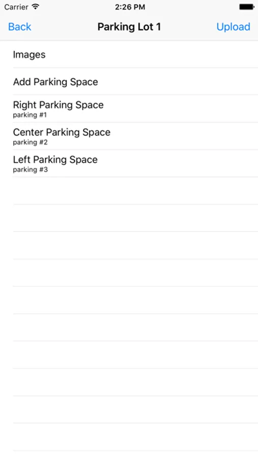 After entering the site, you'll see pre-set locations following the building code arrangement. Add a sub-location, restroom or parking space. Click on "Images" to add a series of images. Clicking on "Images" exits the camera. From here, any images in this location can be deleted or have notes added.