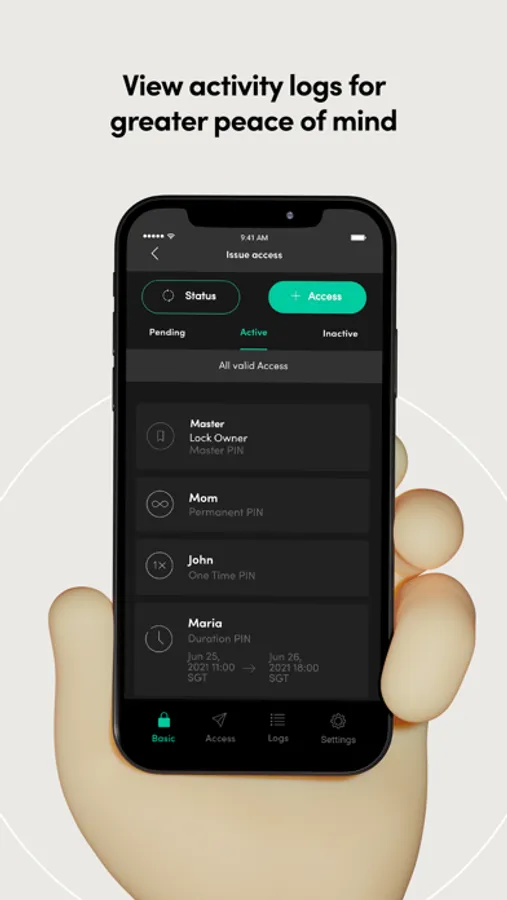 The igloohome app allows users to manage their igloohome smart locks or igloohome smart keyboxes. Grant visitors access to your home or property from any time and place. Through the igloohome app, you can send a PIN code or Bluetooth key to anyone via email/SMS/Whatsapp/other communication platforms, for the duration that you select. Through the igloohome mobile app, you can also check the access logs to see who and when someone has entered your property.