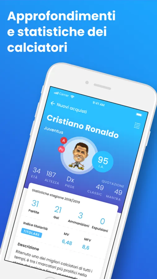 - Le descrizioni, le statistiche, ed i fantaconsigli per ogni calciatore di Serie A;