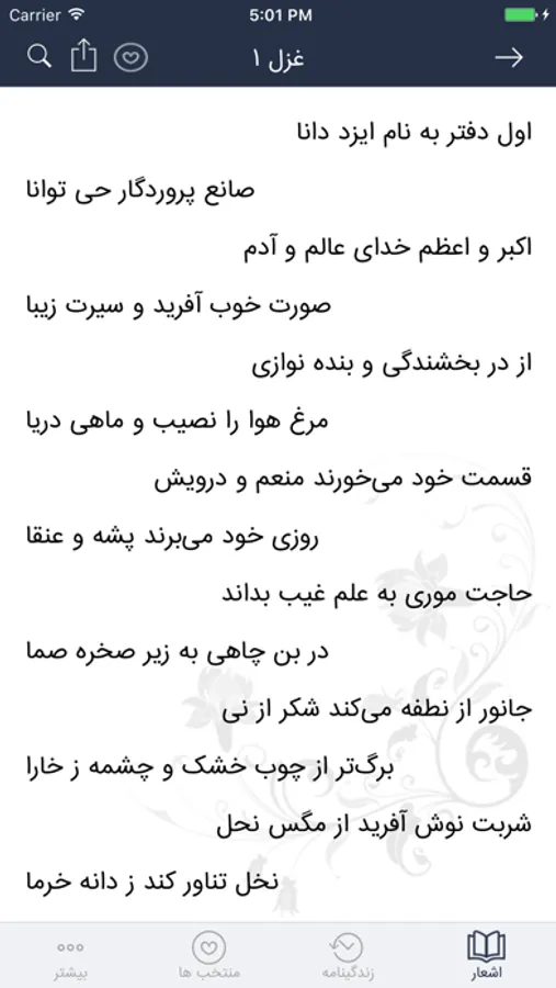 - شعرهای مورد علاقه ی خود را میتوانید درقسمت «اشعار دلخواه» ثبت کنید