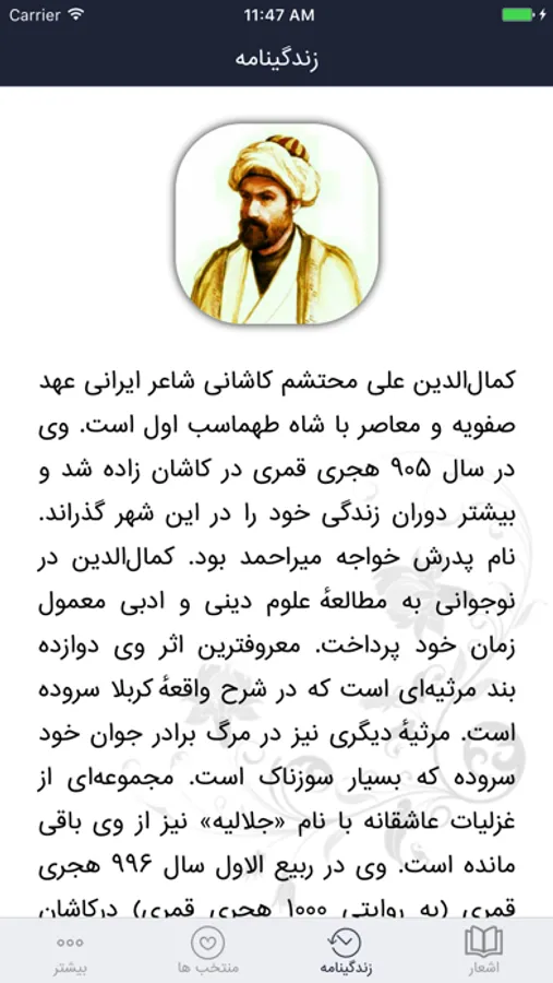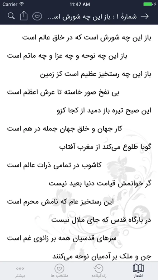 - قابلیت کپی اشعار جهت استفاده در نرم افزارهای مختلف