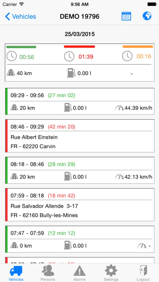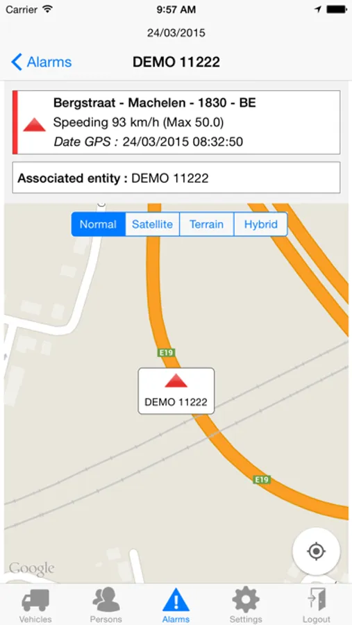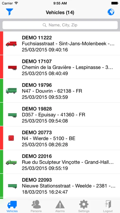 - Alarm management: Live monitoring of alarms generated by vehicles