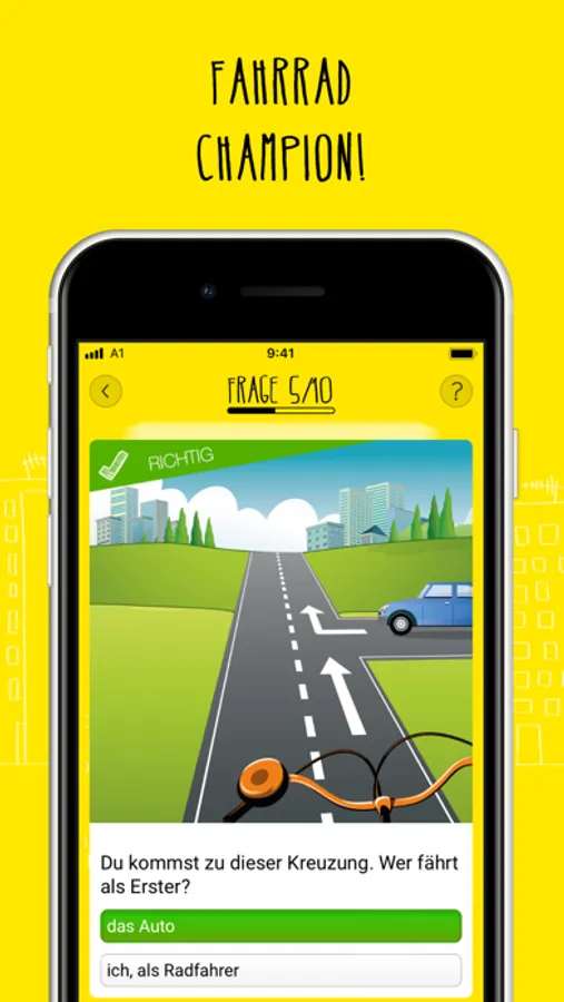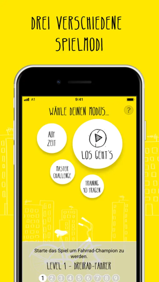 Zeige dein Wissen um die Regeln im Straßenverkehr und küre dich zum "Fahrrad-Champion"! Mit dieser App wirst du im Handumdrehen zum Verkehrsregel-Profi. In drei verschiedenen Spielmodi kannst du dich der Herausforderung stellen und vom "Dreirad-Fahrer" zum "Fahrrad-Champion" aufsteigen.