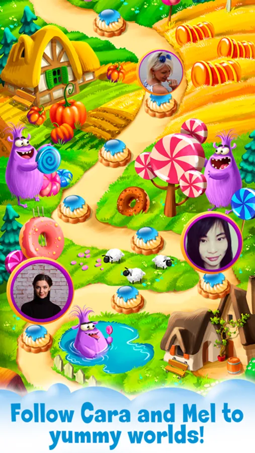 • Run across a variety of mouthwatering worlds, including Purple Lollipopolis, Marshmeadow, Los Mexicandies, and more