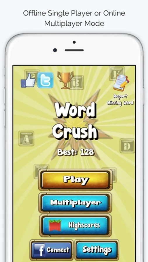 * In Multiplayer Mode, both you and your opponent see the same letters, faster one crushes the word and gets the points.