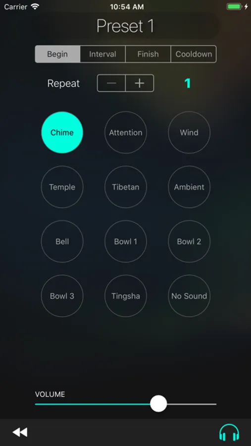 - Select your music, create a playlist or select it from your library to play during the stages of your practice. This feature allows you to play your own bells and sounds. Each practice/meditation will save its own playlist.