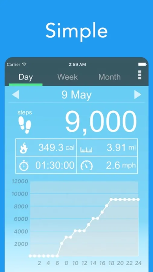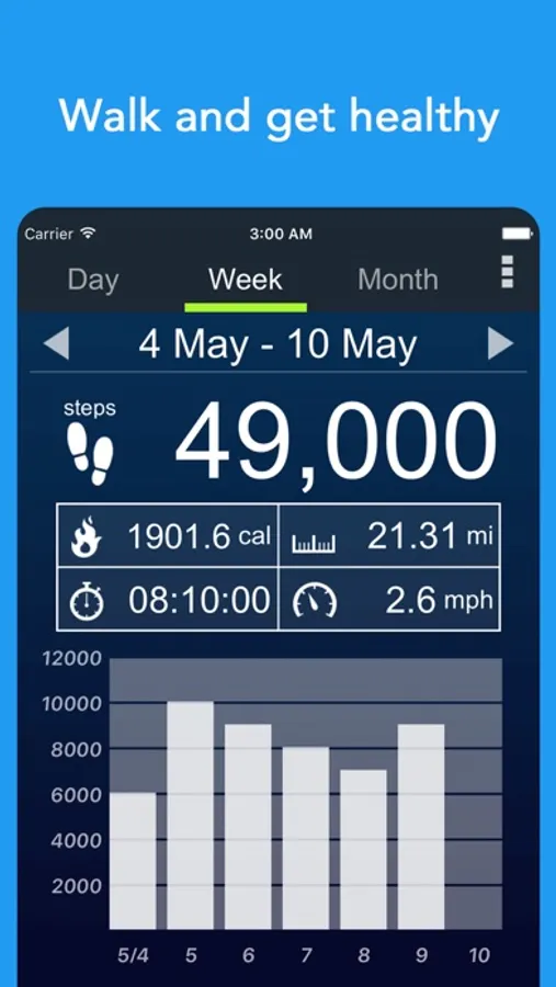 "Pedometer" records the number of steps you have walked and displays them again along with the number of calories that you have burned, distance, walking time and speed per hour.