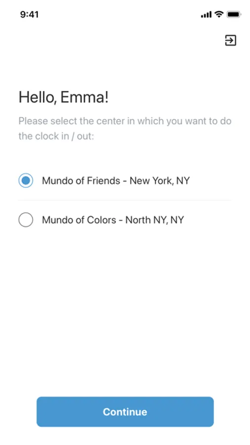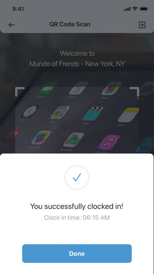 - Clock In/Out by scanning QR code printed at center location