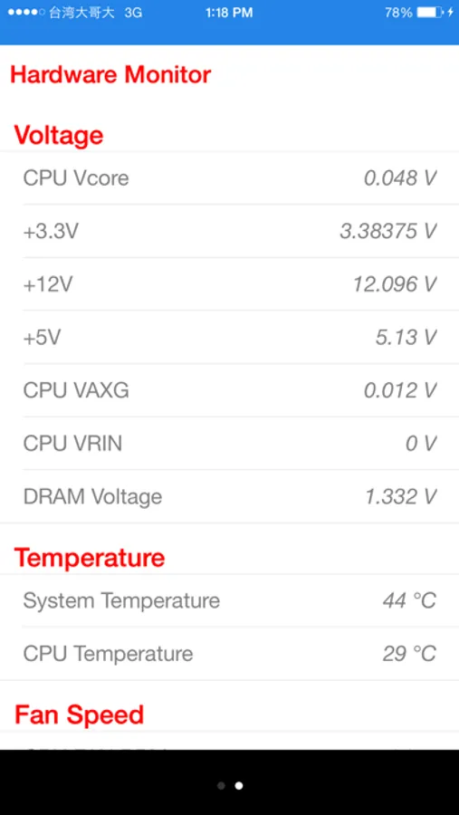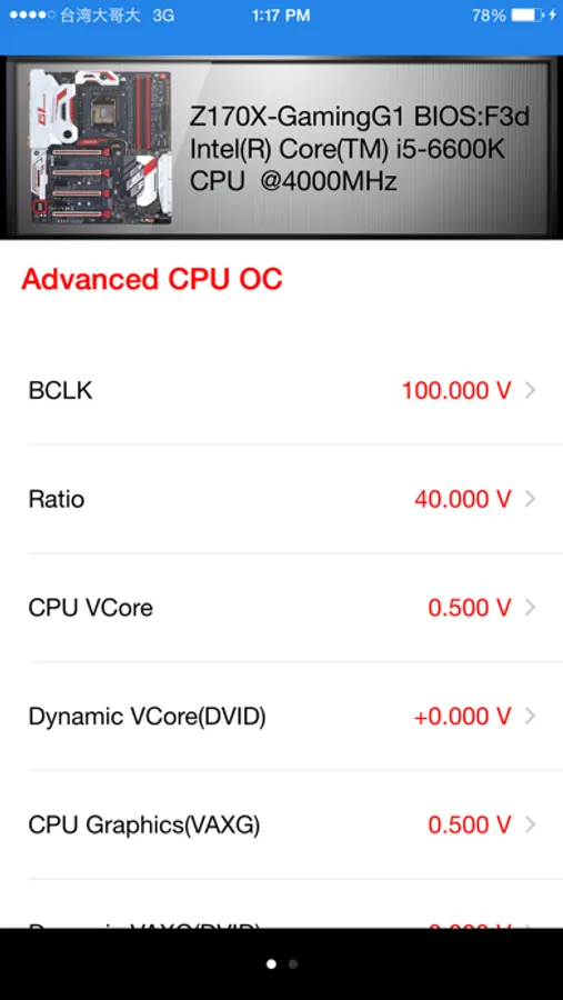 3. Next, tap on the GIGABYTE HW OC app on your iOS device to open it. After a few seconds, you can adjust the overclock/overovoltage options on the Advanced CPU OC menu or check the hardware monitoring items on the Hardware Monitor menu.