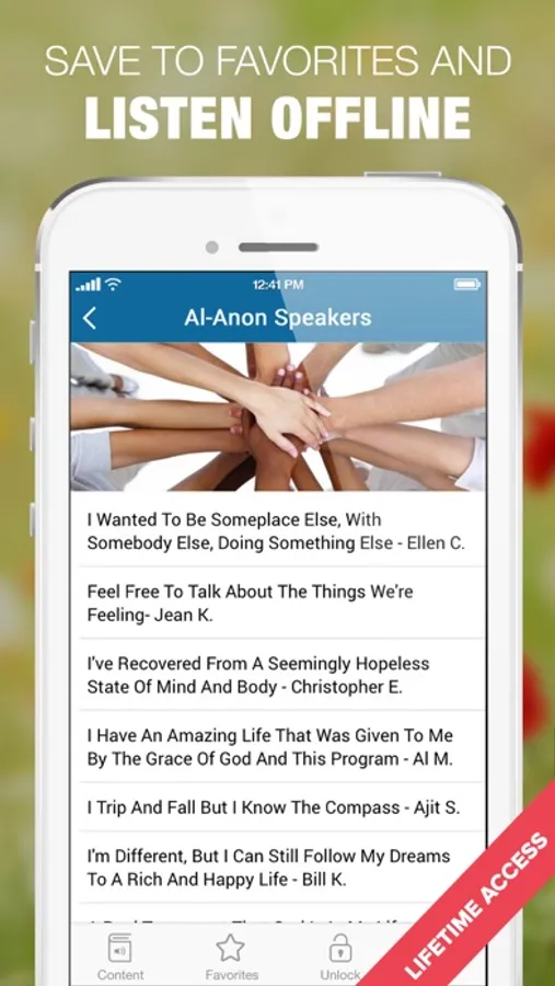 NOTE: You get 12 speakers and much more Al-Anon & AA audio content for free. Unlock and download hundreds more hours of amazing Alanon & AA recovery content from within the app!