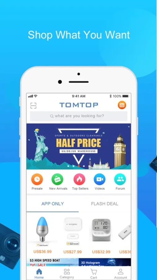 Want to shop at TOMTOP anytime anywhere? Yep, we’ve created just the app for you! With TOMTOP app you can take anything you love about TOMTOP with you everywhere you may roam. You can shop brands and millions of products that you like right from your home! Download TOMTOP app and get the hottest products at incredible prices delivered directly to your door.